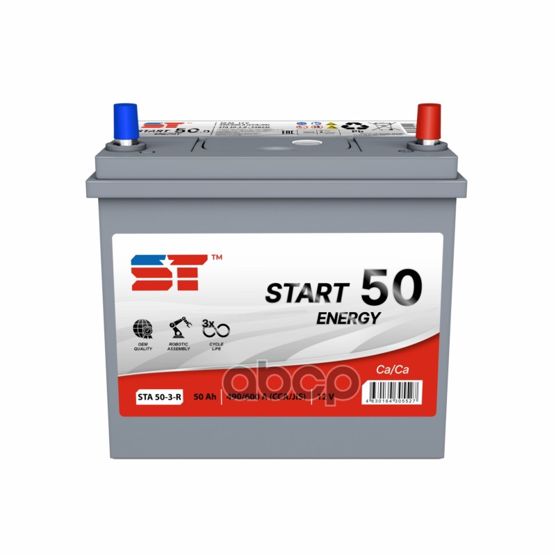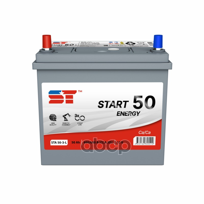Аккумулятор Asia 50 А/ч прямая полярность ST Start ток 490 А яп. 238x129x225