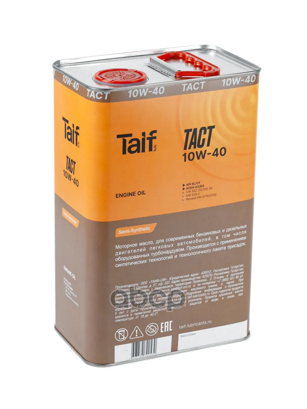Наименование: TAIF TACT 10W-40, Масло моторное, ACEA A3/B4, API SL/CF, 4 л.