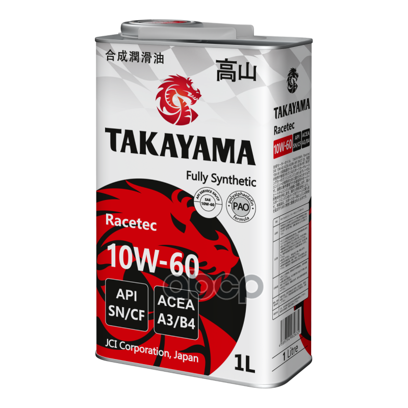 Масло Takayama 10/60 Racetec API A3/B4 SN/СF синтетическое металл 1л 605582 10W60