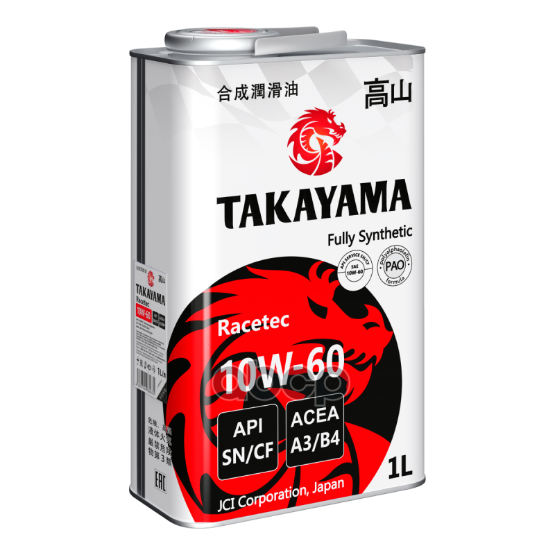 Наименование: Масло Takayama 10/60 Racetec API A3/B4 SN/СF синтетическое металл 1л 605582 10W60