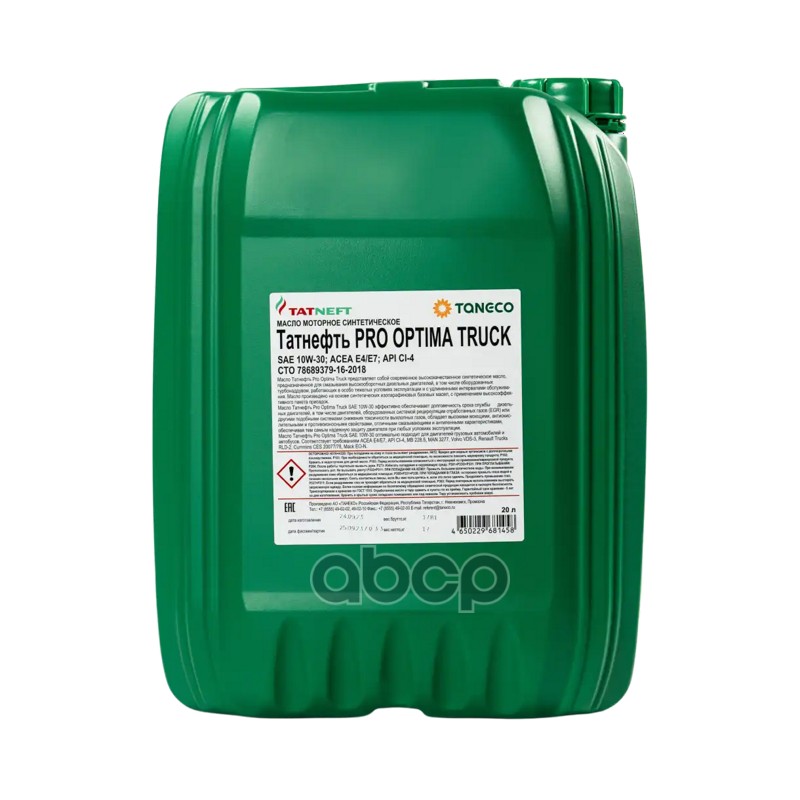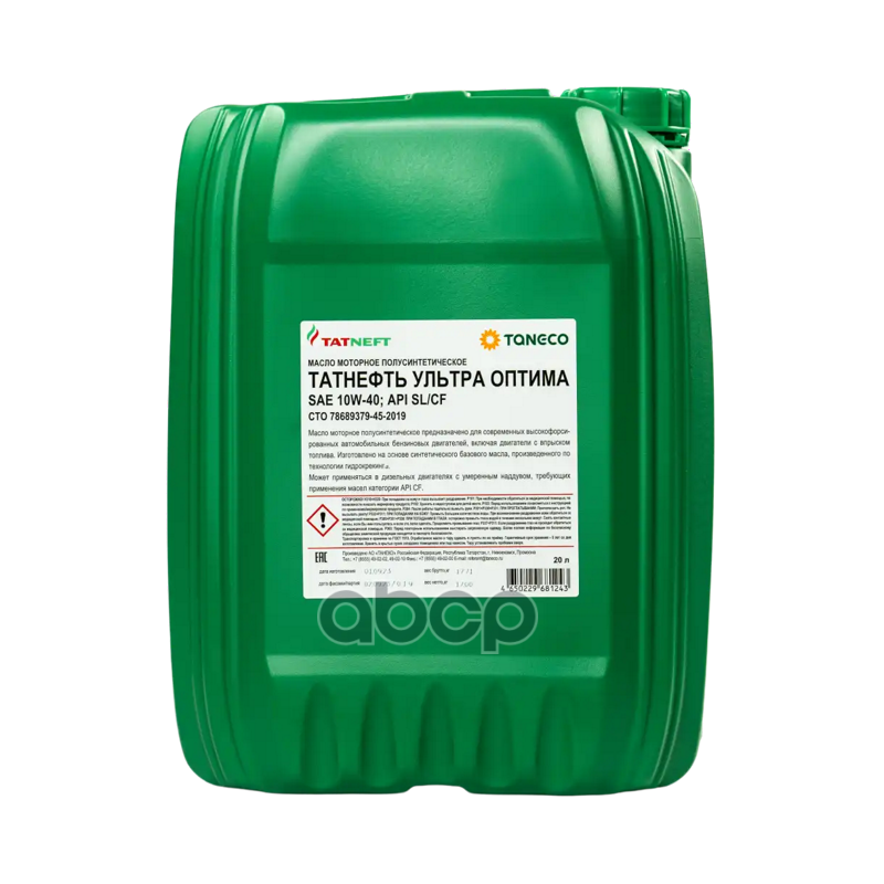 Масло моторное полусинтетическое Татнефть Ультра-Оптима SAE 10W-40 канистра 20 л