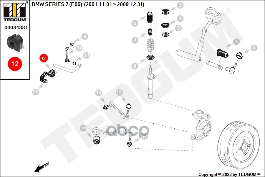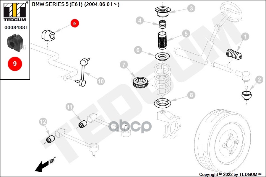Купить запчасть 00084881 Втулка стабилизатора передн 24.6мм BMW: 5 E60 03-, с доставкой в Эль-Монте.