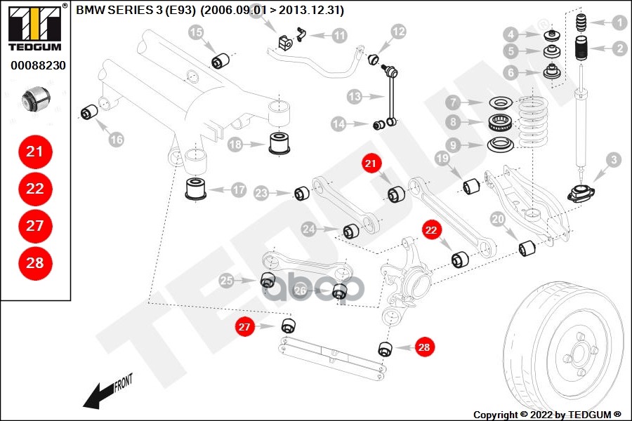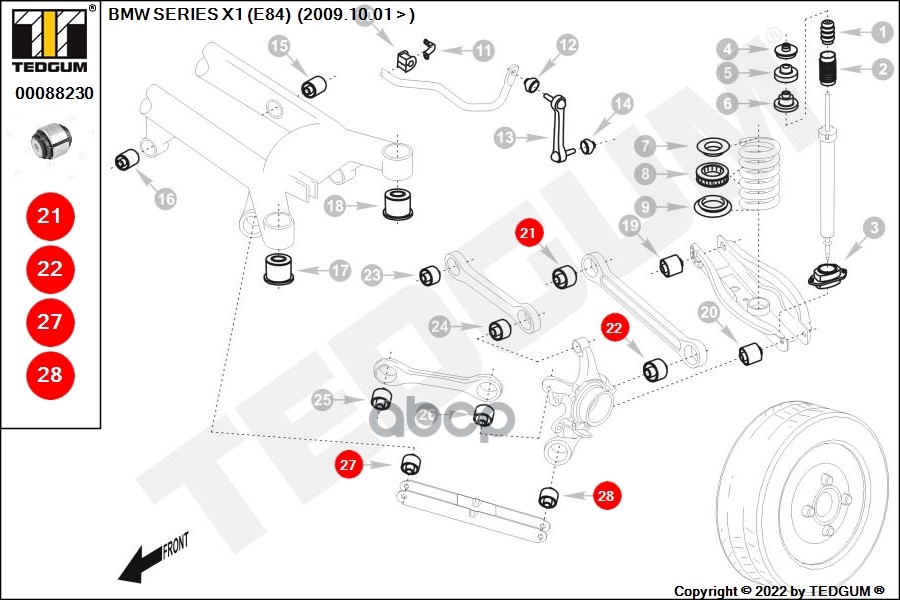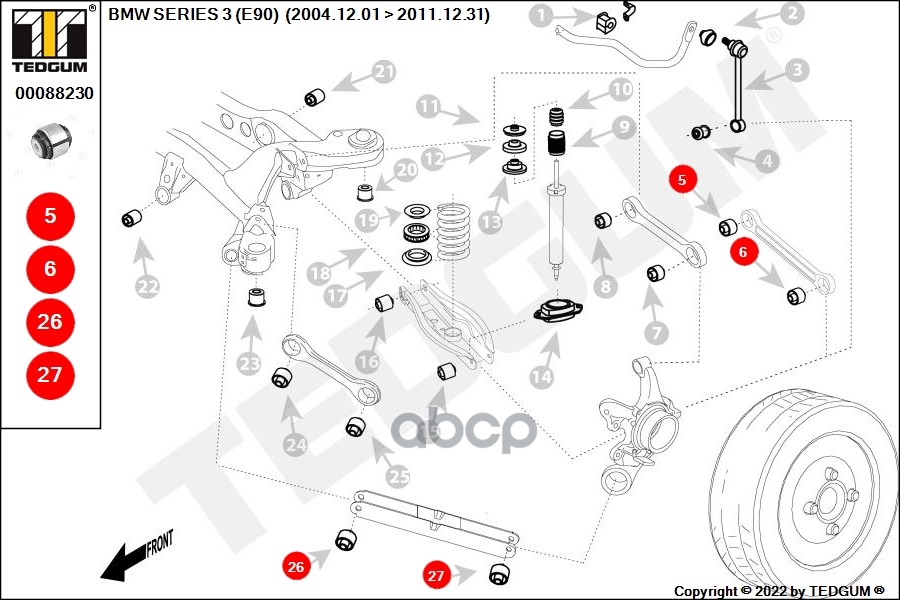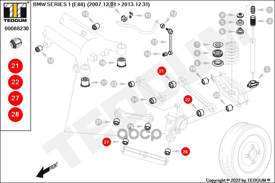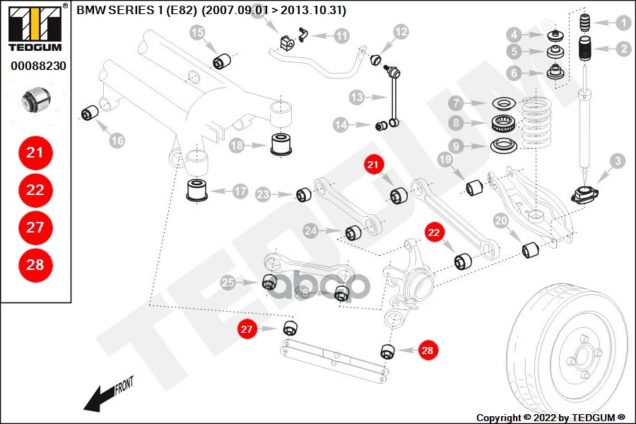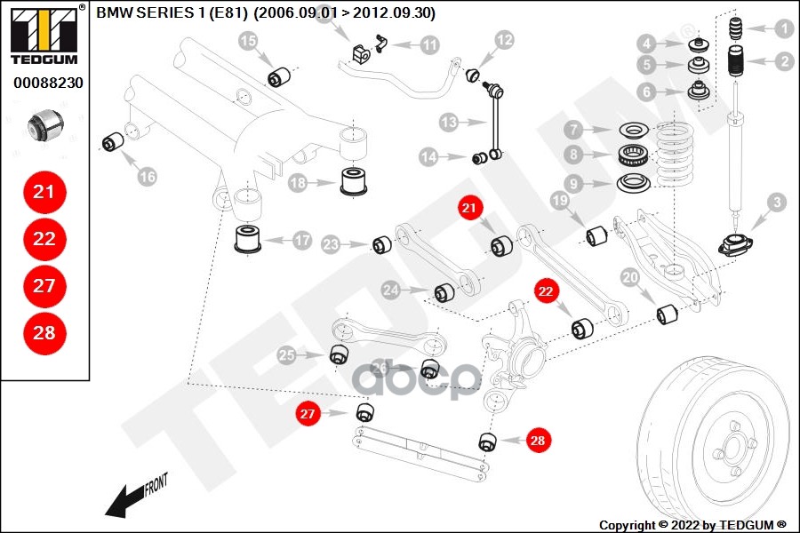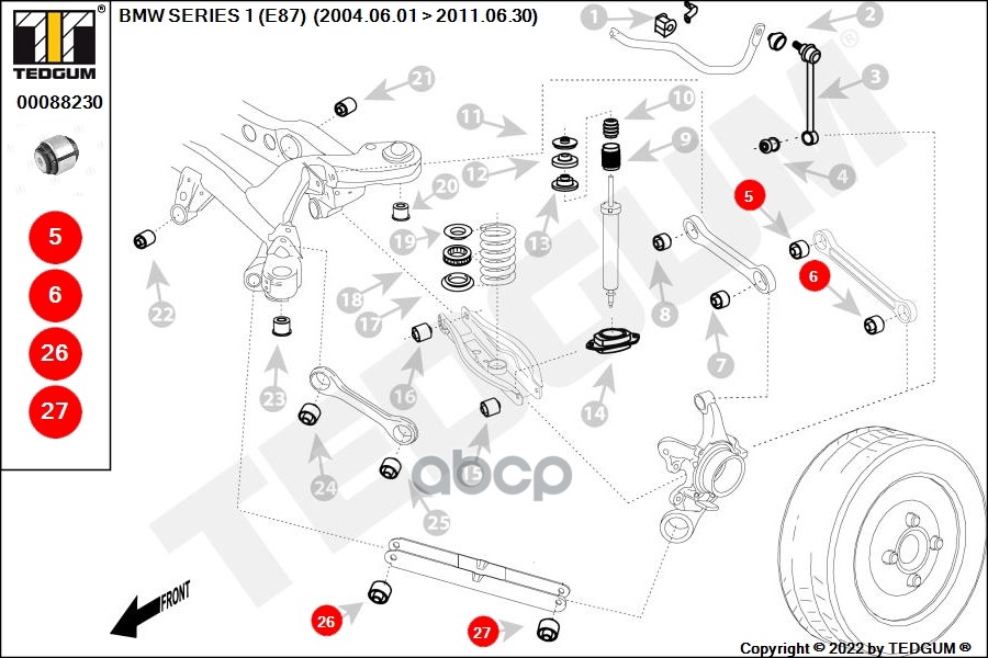 Купить запчасть 00088230 Сайлентблок BMW: 1 (E81, E87) 04-, 1 (E88) 08-, 1 с доставкой в Эль-Монте.