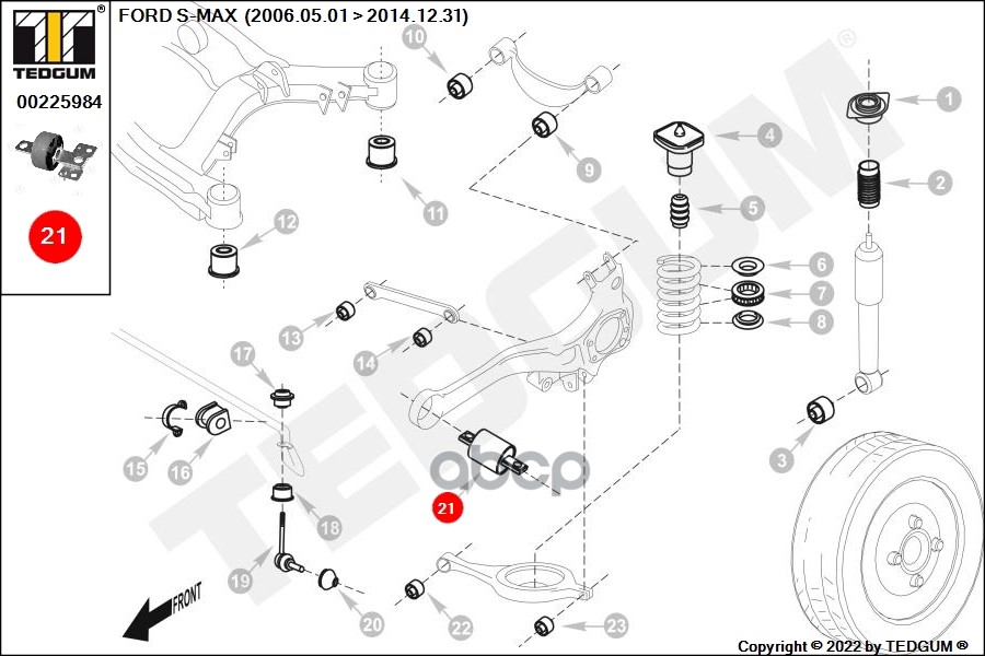 Купить запчасть 00225984 Сайлентблок FORD S-MAX 11-14, GALAXY II 11-15, MONDEO 10-14 с доставкой в Эль-Монте.