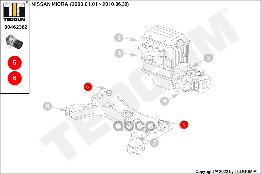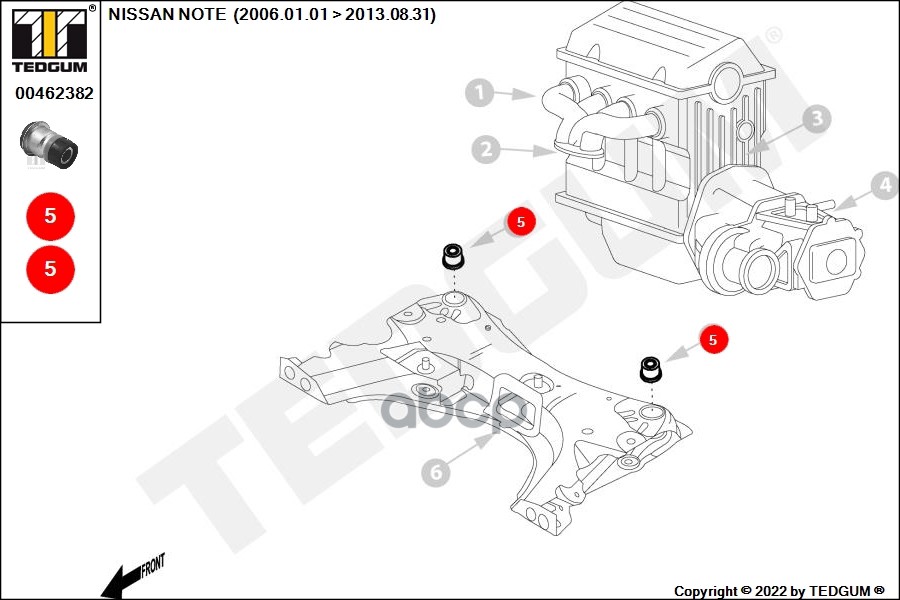 Купить запчасть 00462382 Сайлентблок подрамника задн NISSAN NOTE (E11) 2006 с доставкой в Эль-Монте.