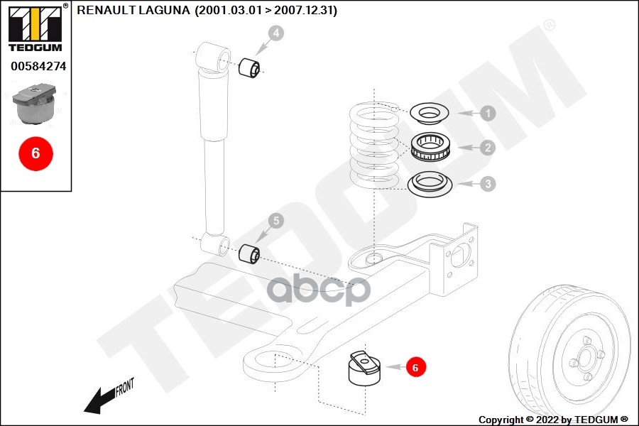 Купить запчасть 00584274 Сайлентблок прав задней оси RENAULT LAGUNA II 01- с доставкой в Эль-Монте.