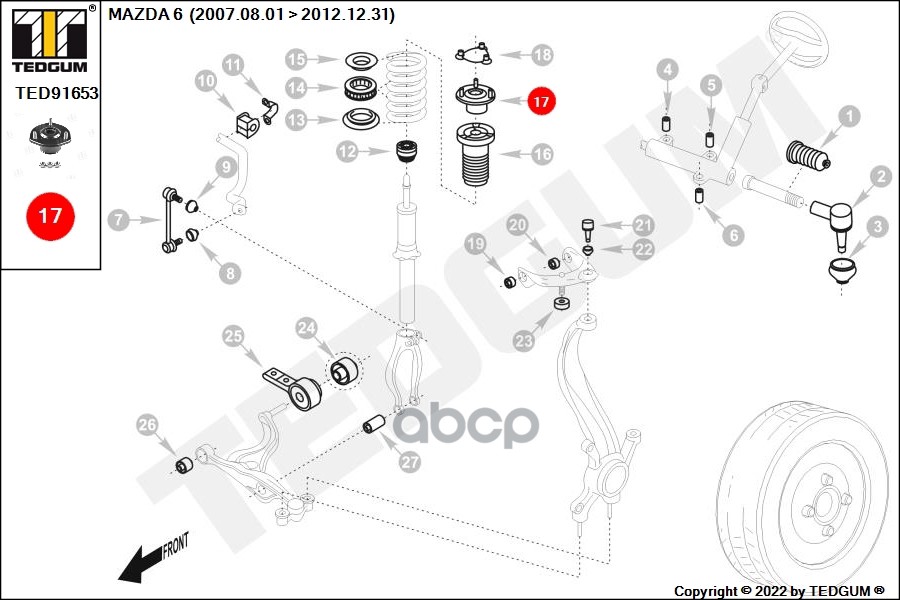 Купить запчасть TED91653 Опора амортизатора передн MAZDA 6 07-13 с доставкой в Эль-Монте.
