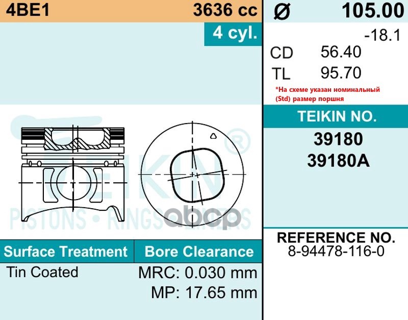 Купить запчасть 39180STD Поршень двигателя с доставкой в Эль-Монте.