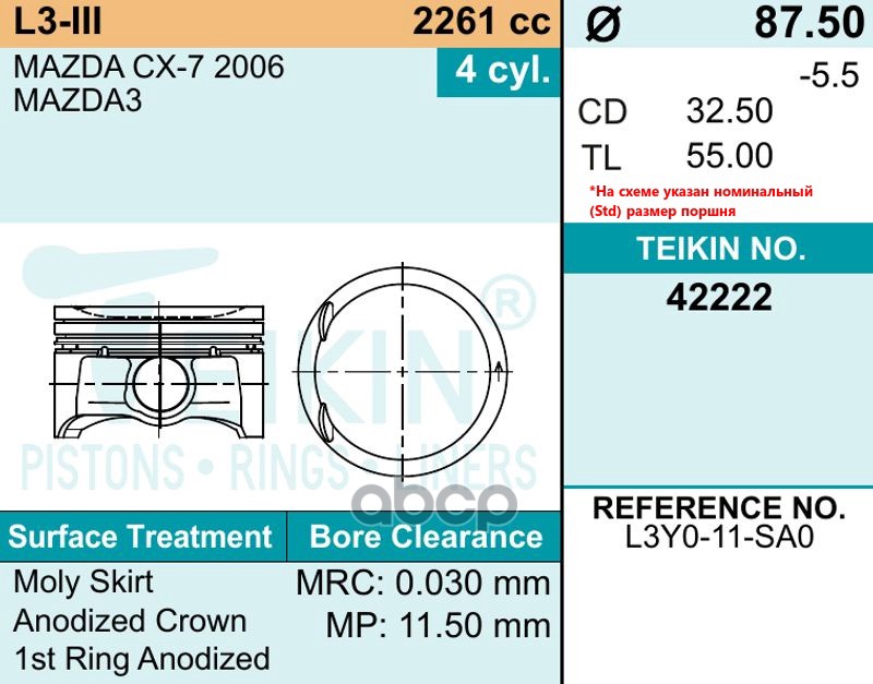 Наименование: TEIKIN Поршень двигателя с пальцем 1шт 42222-050