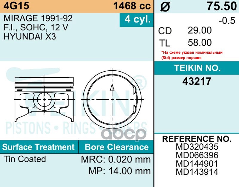 Наименование: Поршни (к-т 4шт) 0,50