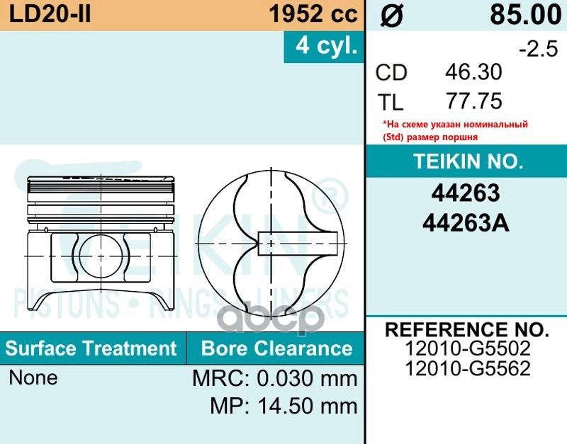 Купить запчасть 44263050 Поршень без колец Nissan LD20-II d85.0+0.50 Teikin с доставкой в Эль-Монте.