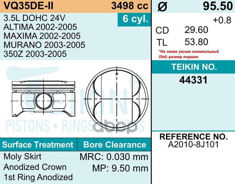 Наименование: TEIKIN Поршень двигателя с пальцем 1шт 44331-050
