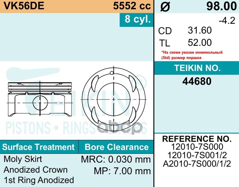 Наименование: Поршни (к-т 8 шт) STD INFINITI QX56/NISSAN PATROL VK56 04-10