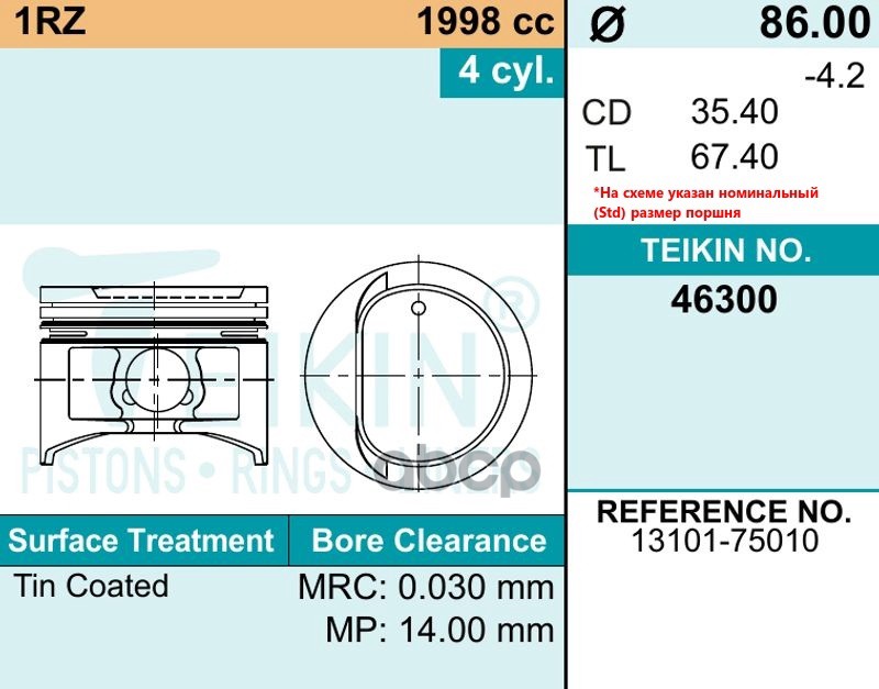 Наименование: TEIKIN Поршень двигателя с пальцем 1шт 46300-STD