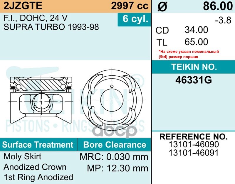 Наименование: Комплект поршней 2JZGTE