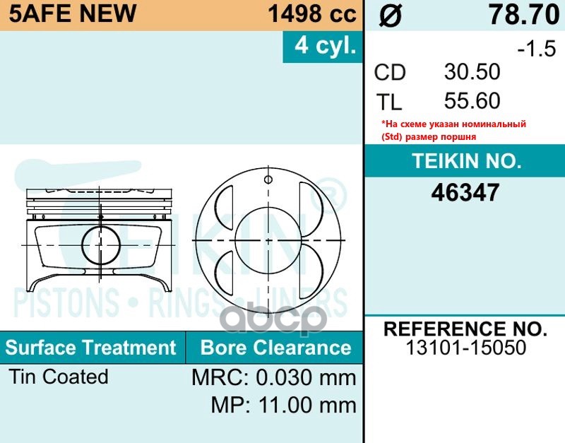 Наименование: Комплект поршней 5A-FE