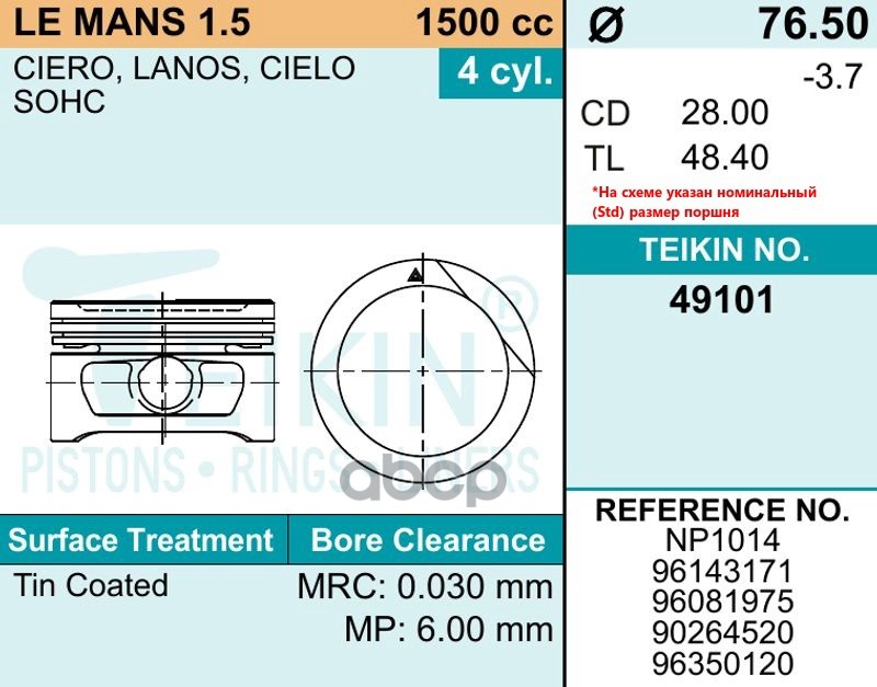 Наименование: Поршень двигателя TEIKIN 49101 STD (4шт упак)