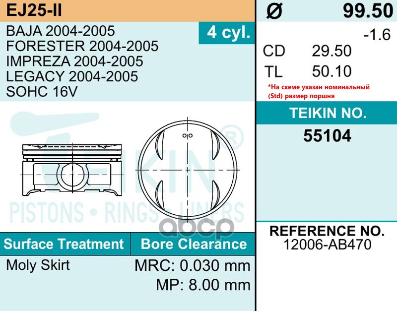 Купить запчасть 55104050 Поршень, комплект на 1 цилиндр ( поршень+палец) с доставкой в Эль-Монте.