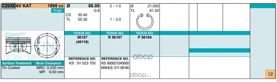 Купить запчасть 56107STD Поршни (к-т 4шт) STD C20XE4V KAT 86/1,5/1,5/3 d=21 с доставкой по России.