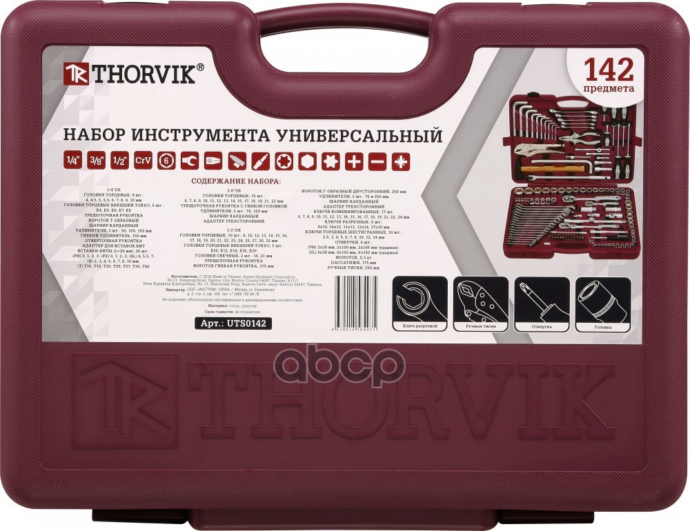 Наименование: UTS0142 Набор инструмента универсальный 1/4, 3/8 и 1/2DR, 142 предмета