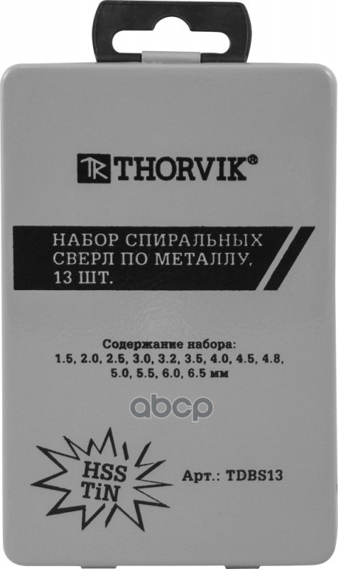 Набор сверл по металлу HSS Co Thorvik 13 шт. 1.5-6.5 мм металлический футляр TDBS13K5