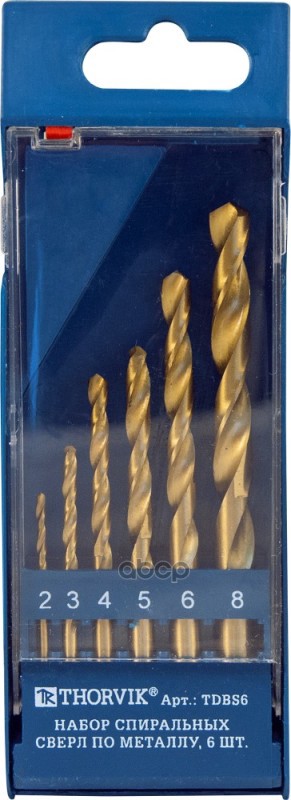 Набор спиральных сверл по металлу HSS TiN в пластиковом кейсе, d2.0-8.0 мм, 6 предметов