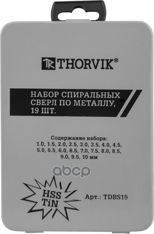 Набор сверл по металлу HSS Co Thorvik 19 шт. 1.0-10.0 мм металлический футляр TDBS19K5