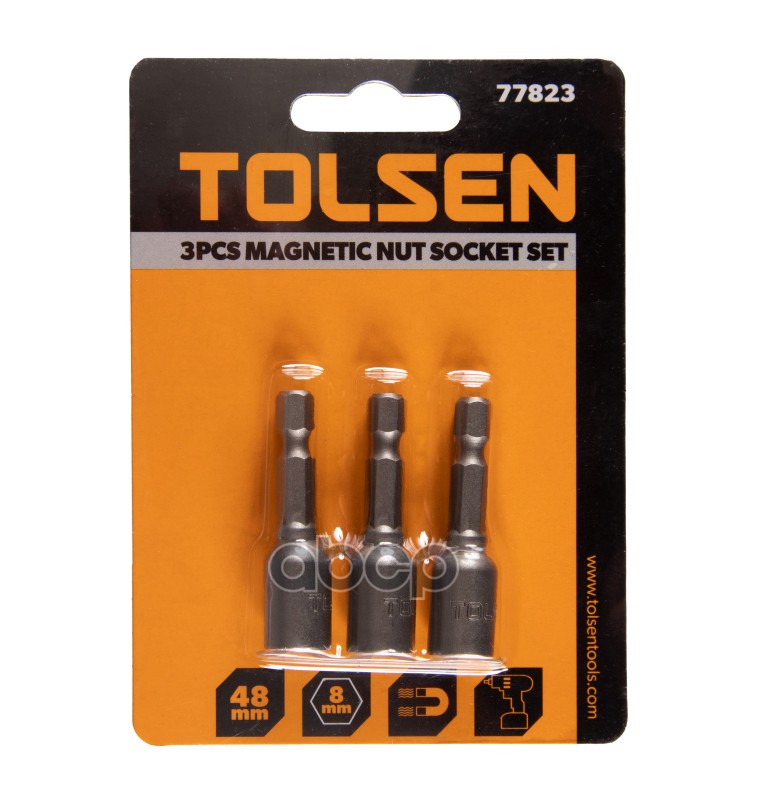 Купить запчасть TT77823 TOLSEN Набор головок для шуруповерта шестигранных 14, 8 мм, 48 мм, магнитных, 3 предмета с доставкой в Эль-Монте.
