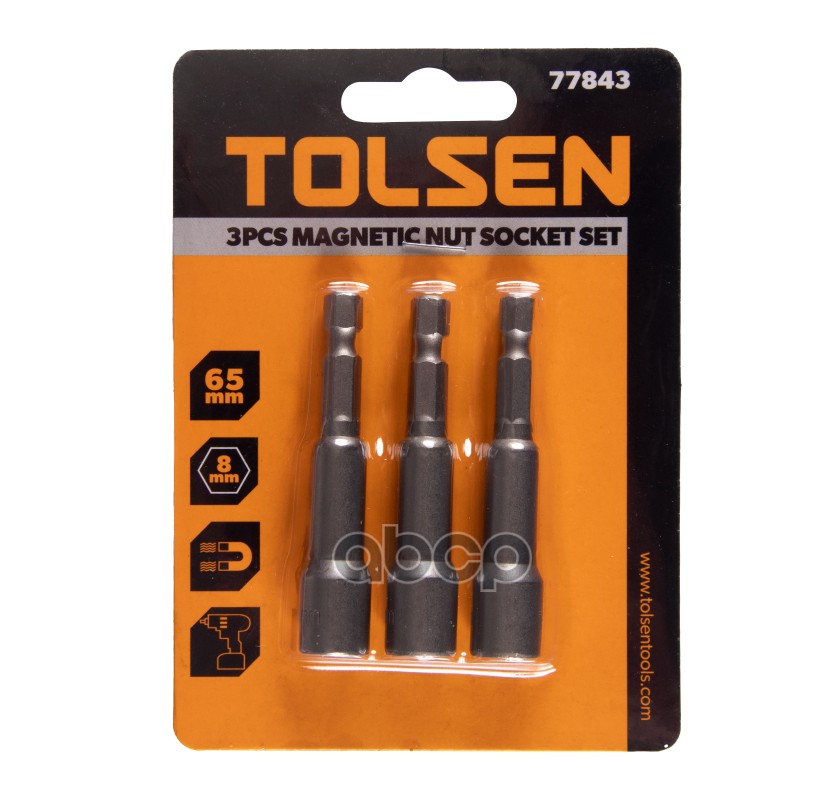 Купить запчасть TT77843 TOLSEN Набор головок для шуруповерта шестигранных 14, 8 мм, 65 мм, магнитных, 3 предмета с доставкой в Эль-Монте.