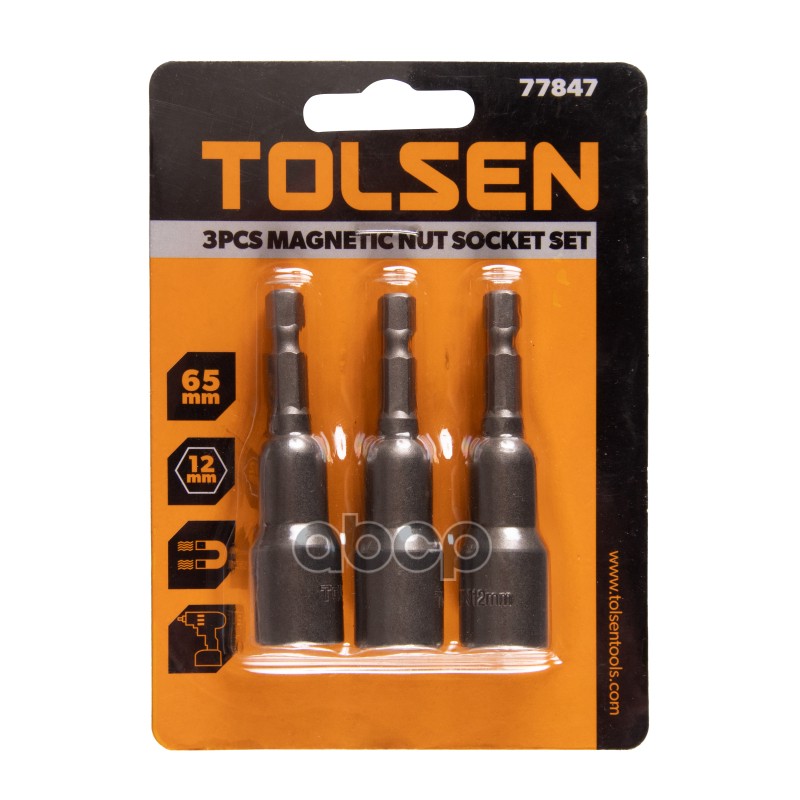 Купить запчасть TT77847 TOLSEN Набор головок для шуруповерта шестигранных 14, 12 мм, 65 мм, магнитных, 3 предмета с доставкой в Эль-Монте.