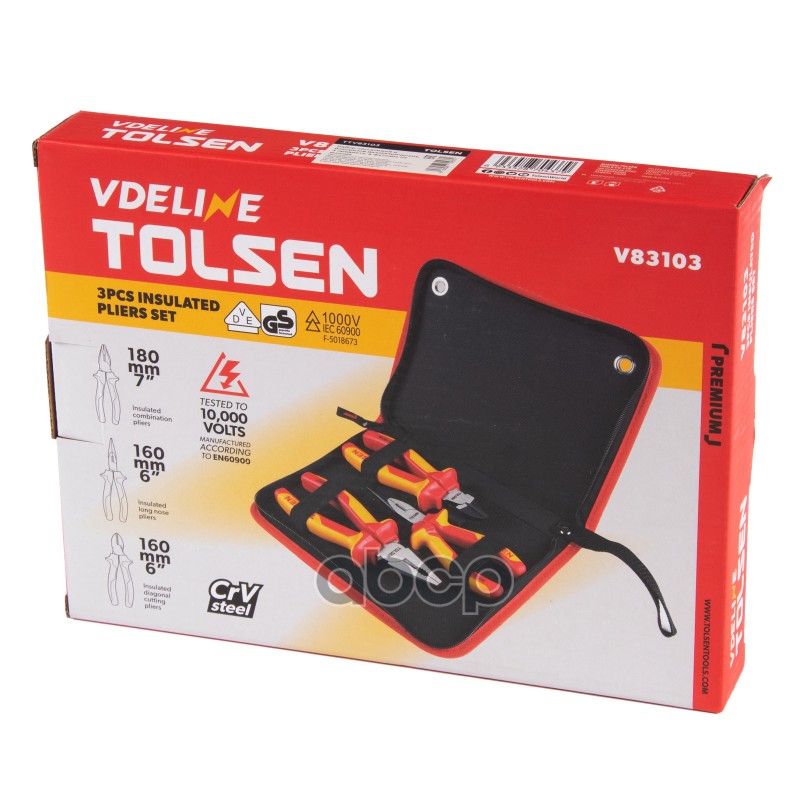 Купить запчасть TTV83103 TOLSEN Набор пассатижей и бокорезов диэлектрических, 3 предмета, в футляре на молнии с доставкой в Эль-Монте.