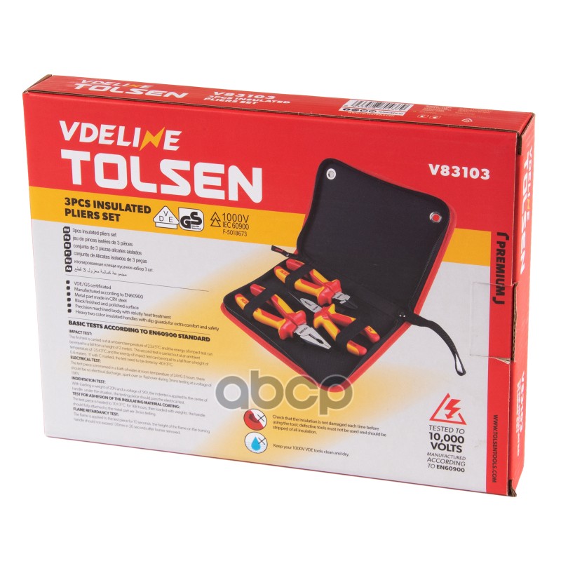 Наименование: TOLSEN Набор пассатижей и бокорезов диэлектрических, 3 предмета, в футляре на молнии