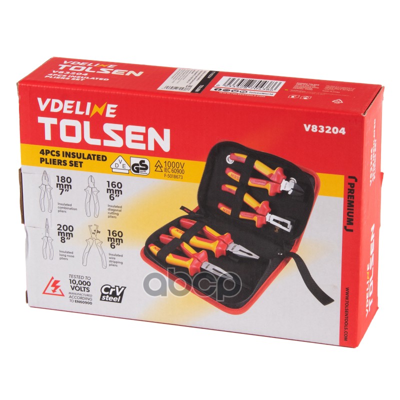Купить запчасть TTV83204 TOLSEN Набор пассатижей и бокорезов диэлектрических, 4 предмета, в футляре на молнии с доставкой в Эль-Монте.