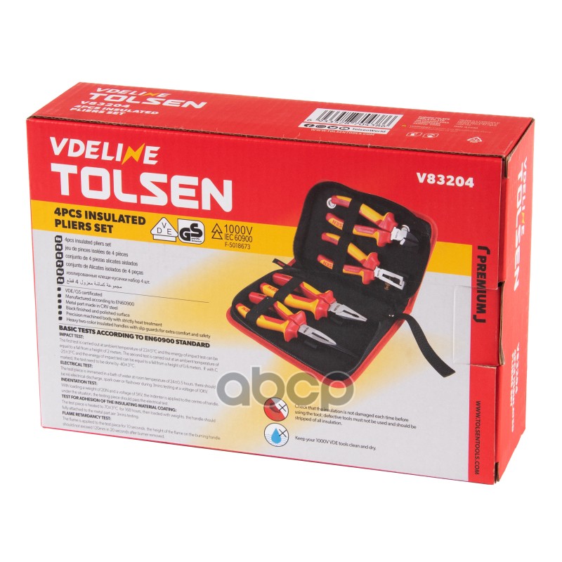 Наименование: TOLSEN Набор пассатижей и бокорезов диэлектрических, 4 предмета, в футляре на молнии