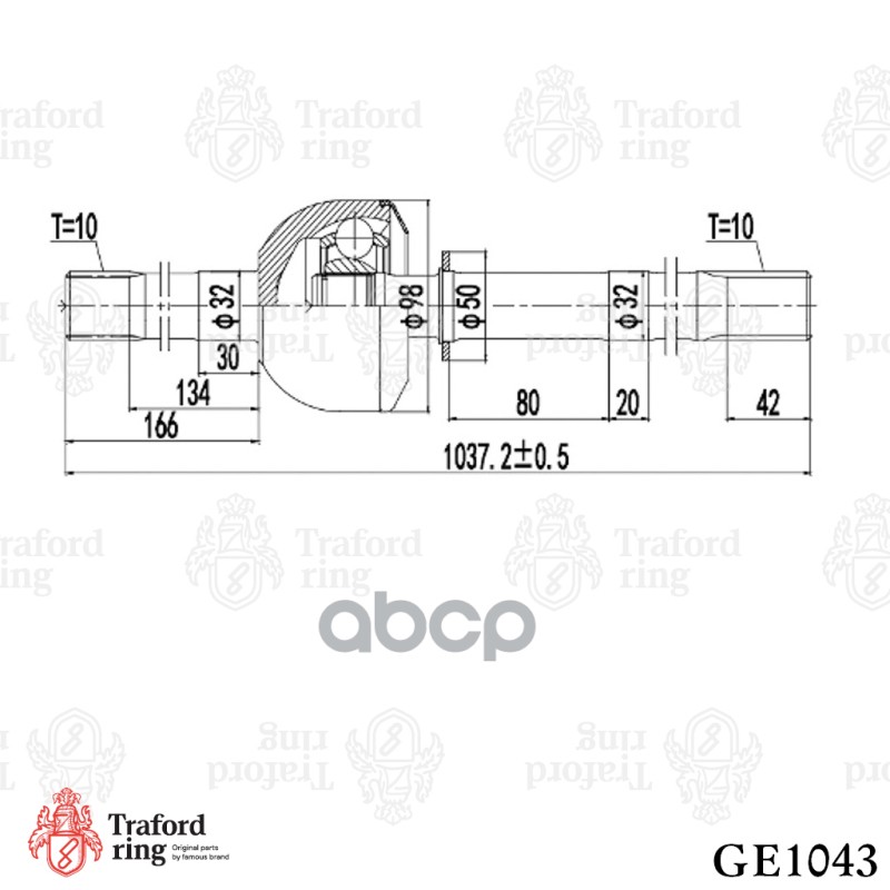 Бренд: TRAFORD RING, артикул: GE1043, ШРУС ЛЕВЫЙ, УАЗ 31519 ХАНТЕР 1445 ММ.. |