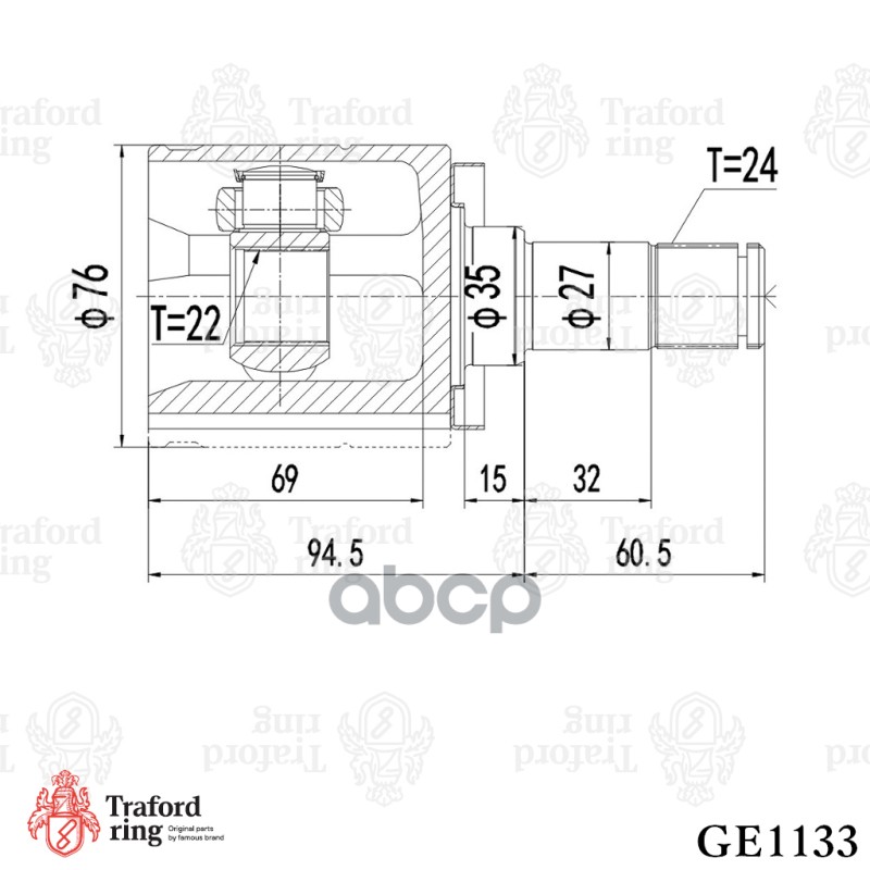 TRAFORD RING GE1133 Бренд: TRAFORD RING, артикул: GE1133, ШРУС ВНУТРЕННИЙ, ЛАДА LARGUS 15-X-RAY 15- КП.