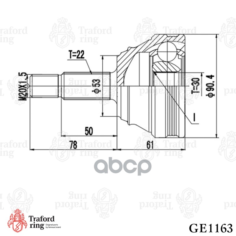 Бренд: TRAFORD RING, артикул: GE1163, ШРУС НАРУЖНЫЙ, CHERY AMULET A15 03- 30 ШЛЦ.. |