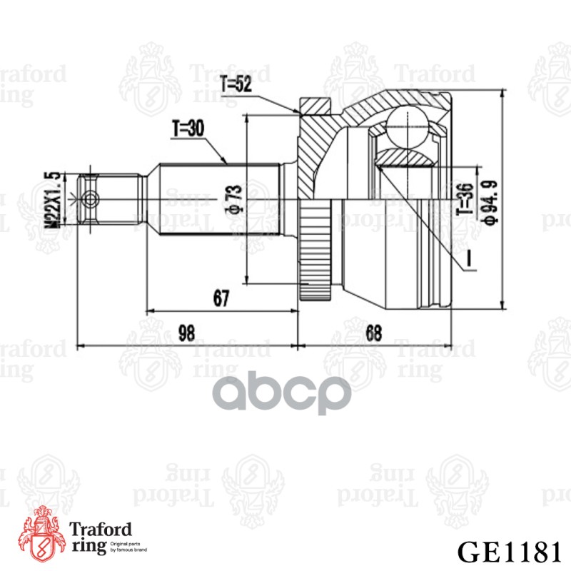 Бренд: TRAFORD RING, артикул: GE1181, ШРУС НАРУЖНЫЙ, HYUNDAI SANTA FE 06- 2.2CRDI. |