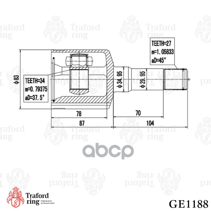 TRAFORD RING GE1188 Бренд: TRAFORD RING, артикул: GE1188, ШРУС ВНУТРЕННИЙ ЛЕВЫЙ, CHEVROLET CAPTIVA 06-OPE.