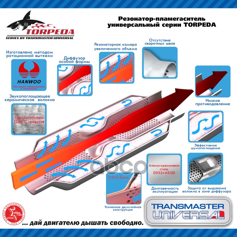 TRANSMASTER UNIVERSAL T5089300D Бренд: TRANSMASTER, артикул: T5089300D, Резонаторпламегаситель универсальный 5089300.