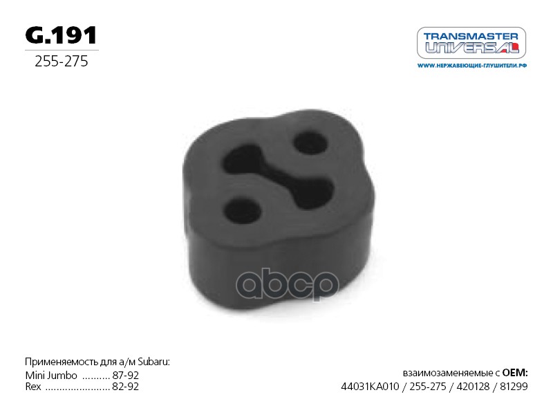 Резинка крепления резонатора Chevrolet Lanos, Rezzo/Nubira, Leganza TRANSMASTER Universal g.175 g175; 255215; 96351183; 18215SB2960; 18215SB2961; 18215SA0960; 18215671000; 96352141; AMDSB617