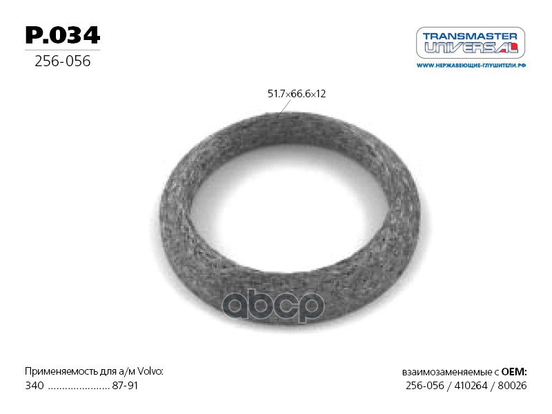 86012 Кольцо уплотнительное глушителя 6745091 TRANSMASTER UNIVERSAL P.049