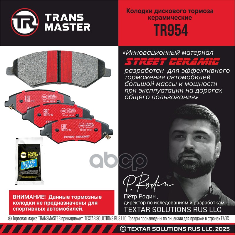 Купить запчасть TR954 Колодки дискового тормоза керамические с доставкой по России.