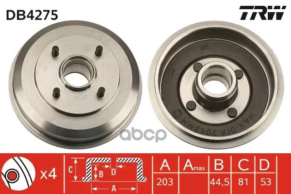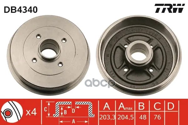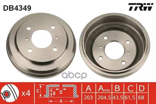 Торм. барабан зад [203.2x40.6] 4 отв. HYUNDAI Accent 1,4-1,6/GL/GLS/CRDi 11/05->/ i20 1,2 09/08->.KIA Rio II 1,4-1,6/CRDi 03/05->