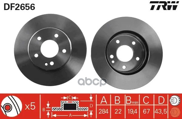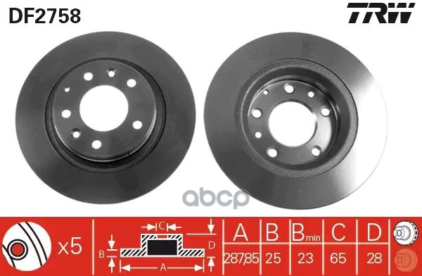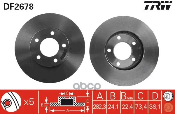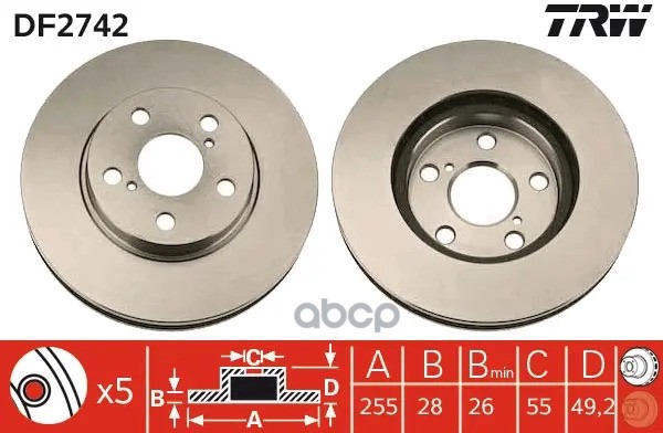 Торм.диск пер.вент.[255x28] 5 отв. TOYOTA CARINA E 1992 - 1997, CARINA II 1988 - 1993, CORONA 1993 - 1995