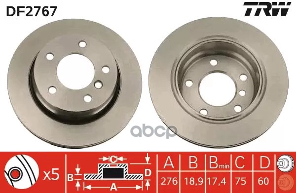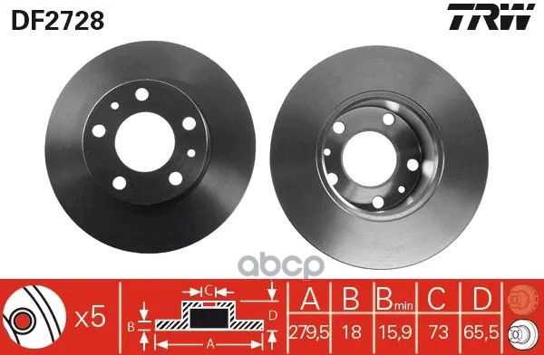 Торм.диск зад.[268x10] 5 отв. VW Sharan 15" 1.8T-2.8/1.9TDI 5/95-> FORD Galaxy 1.9TD,2.8 95-> SEAT Alhambra 1.8T/1.9 TDI/2.0
