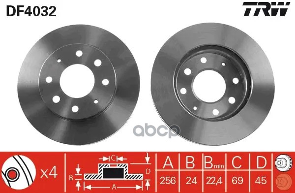 Торм.диск пер.вент.[256x24] 4 отв. MITSUBISHI Space Runner 1,8 10/91-08/99/ Space Wagon 1,8/2,0/TD 10/91-10/98