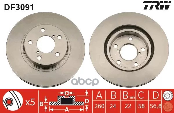 Торм.диск пер.вент.[258x22] 4 отв. FORD Fiesta IV 1,0-1,6-16v/1,8D 95-01/02 ,Focus 1,4-2,0-16c/1,8D 10/98-> ,MAZDA 121 III 3/96->