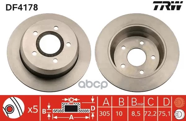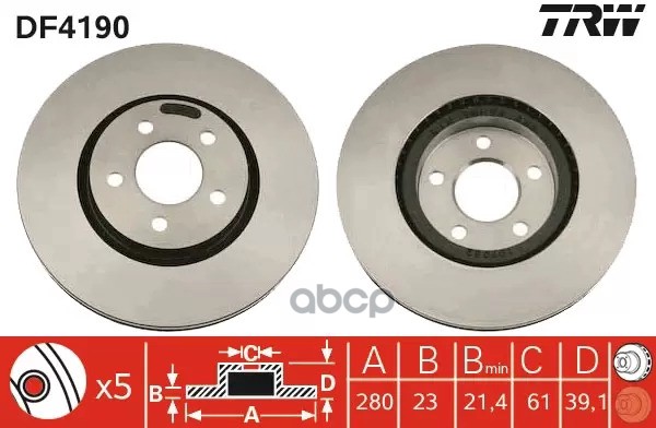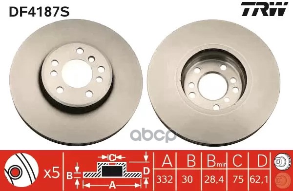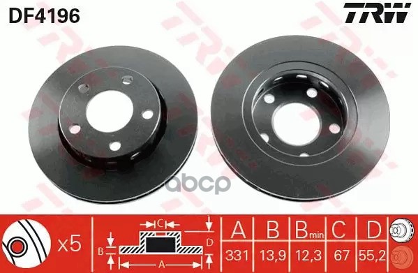 Диск тормозной передний CITROEN BERLINGO, C3 I-II, C4 I-II, C5 I-II, PEUGEOT 207, 208 DF4184
