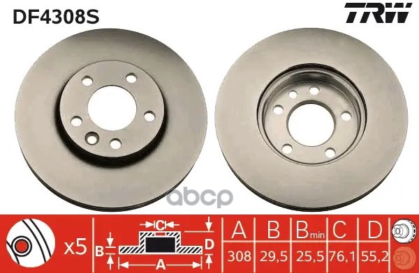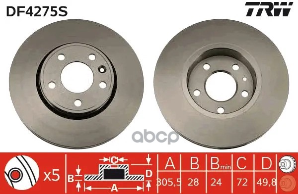 Диск тормозной | зад | VW TRANSPORTER V Bus (7HB, 7HJ, 7EB, 7EJ, 7EF, 7EG, 7HF, 7EC) 2.0 TDI 09.2009 - 08.2015 <=> VW TRANSPORTER V Box (7HA, 7HH, 7EA, 7EH) 2.0 TDI 09.2009 - 08.2015